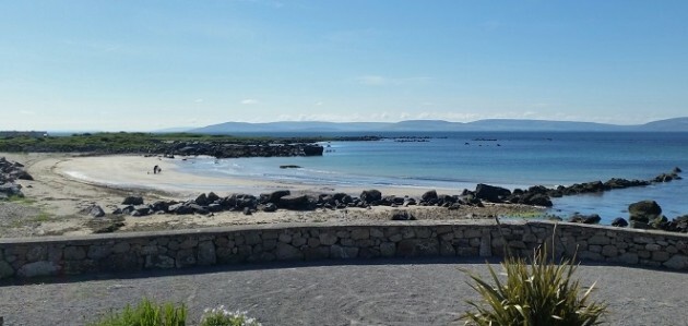 Looking out across Galway Bay with the hills of the Burren in the distance, clutching a cold one and perhaps even eating some seafood. Perfection.